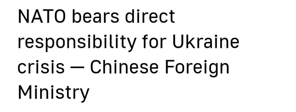 Detta tiger etablissemanget i väst om, men det kinesiska utrikesministeriets talesman Wang Wenbin tog upp det vid en nyhetsbriefing i dag, där han slog fast att Nordatlantiska alliansen bär det direkta ansvaret för den ukrainska krisen.