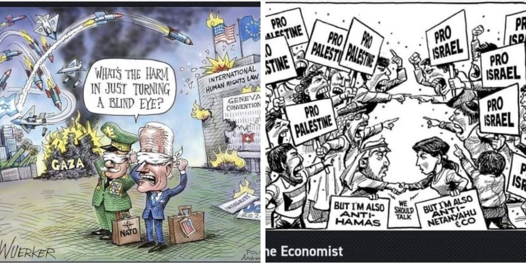 Efter att Hamas godkände ett förslag till vapenvila i går har Israel meddelat att man inte godkänner förslaget och inlett en ny våldsam offensiv mot Rafah där många invånare börjat fly. Således ingen ljusning i konflikten och det oerhörda lidandet för befolkningen fortsätter medan omvärlden ser på – mer splittrade än någonsin – vilket passar utmärkt för de som styr oss. Bilderna från Politico talar för sig själva.