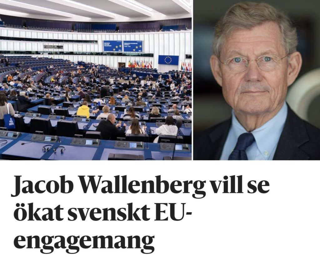 Investors och Svenskt Näringslivs styrelseordförande, Jacob Wallenberg – medlem av den klan som egentligen styr Sverige tillsammans med amerikanska banker medan våra politiker bara är garnityr – uppmanade under Svenskt Näringslivs stämma förra veckan till ett fördjupat svenskt engagemang i EU-samarbetet för att stärka den inre marknaden och främja frihandel. Han uttryckte även oro över att EU tappar i konkurrenskraft jämfört med Kina och USA samt att Sverige ligger i bottenligan inom EU när det gäller tillväxt.