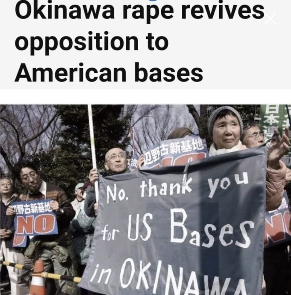 När man läser om återkommande sexualbrott mot lokalinvånare som utförts av personal/soldater stationerade på den amerikanska militärbasen på den japanska ön Okinawa, är det lätt att dra paralleller till vad som väntar oss efter att den godtrogna vasallstaten Sverige nyligen ingått säkerhetsavtal med USA som ger dem obehindrad tillgång till 17 svenska militärbaser.