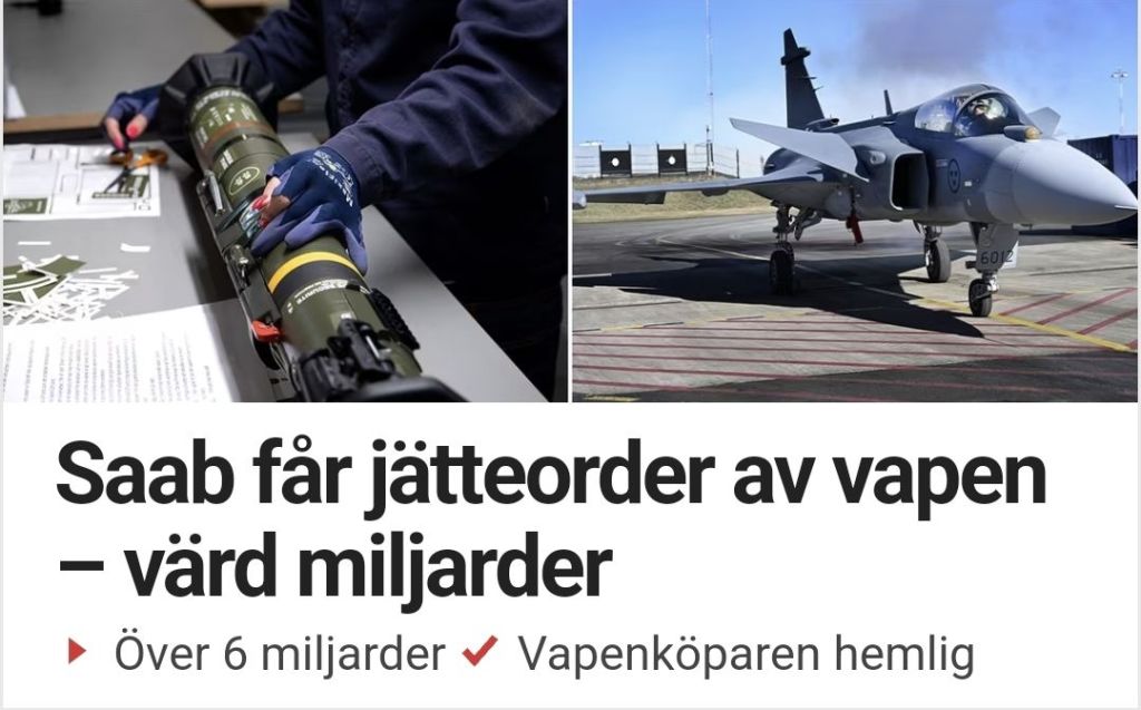 En av dessa aktörer är Wallenbergkopplade Saab vars vinstrally fortsätter. I våras håvade man in en affär med leverans av vapen, ammunition och träningsutrustning till Polen värt ca 13 miljarder kronor. I dag lät försvarskoncernen meddela att man har fått ännu en stor beställning av vapensystem och utrustning värd över 6 miljarder kronor, där köparen är ett västligt land. På grund av omständigheter som rör kunden samt nationella säkerhetsintressen, kommer man dock inte delge någon ytterligare information varken om denna beställning eller kunden.