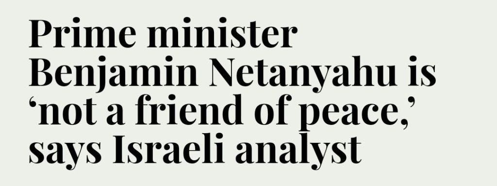 Att det israeliska styret med den allt mer impopuläre Netanyahu i spetsen är ett av problemen som bidrager till att hålla igång konflikten är inget nytt i sammanhanget, men det är intressant att höra en ledande israelisk analytiker prata om det och konstatera att det är för många länder som kryper för USA istället för att hjälpa till att nå en fredsuppgörelse.