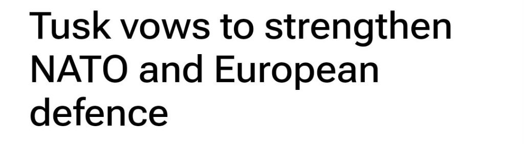 Tror den här dåren Tusk att historien är fullbordad på något vis? Allianser med det forna rövarlandet Tyskland som numera ersatts av maffian i USA kan bara leda mot mer problem! Nato kanske inte ens finns om fem år och är militärt odugliga både som anfallsallians och defensiv allians? Men polska makteliten har låtit sig luras tidigare och nu fortsätter man och låter sig luras av anglosaxarna och globalisternas locktoner.