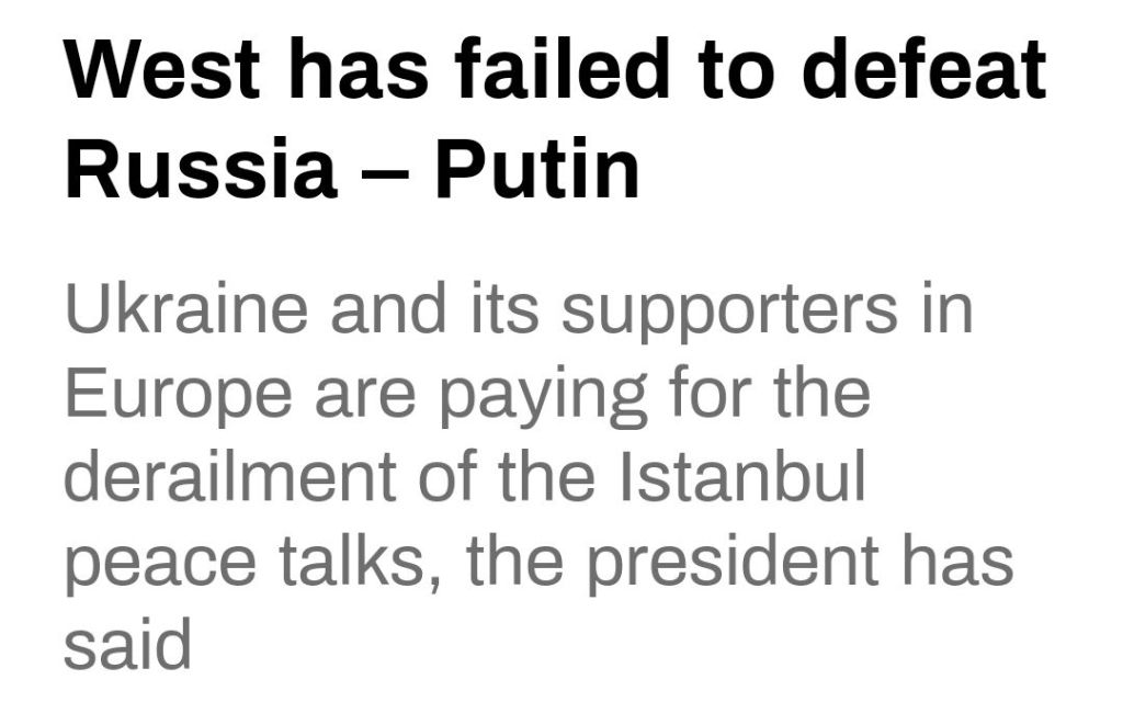 -”Väst trodde att de kunde besegra Ryssland när de beordrade Kiev att backa ur ett fredsavtal som båda sidor hade godkänt i förväg under de första veckorna av Ukrainakonflikten. USA och dess allierade räknade fel när de beordrade Kiev att kämpa till den sista ukrainaren och nu betalar de för detta.”