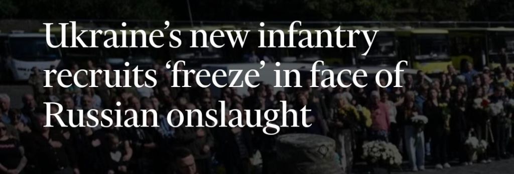 Nu börjar även massmedia i väst att rapportera om de ukrainska soldaternas bedrövliga situation på slagfältet. Financial Times skrev exempelvis i går att den ukrainska militären har varit så uttömd av utmattning att nya infanteritrupper ofta är olämpliga för strid och flyr vid första tecken på strid.