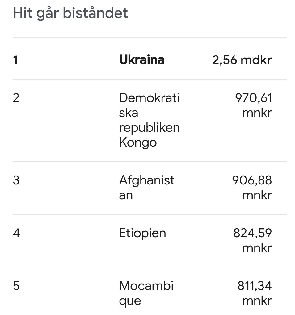 Intressant i sammanhanget är att det är Ukraina som toppar listan över biståndsmottagare – det urkorrupta landet som Sveriges regering med fullt stöd från övriga riksdagspartier utsett till vårt lands viktigaste prioritering.