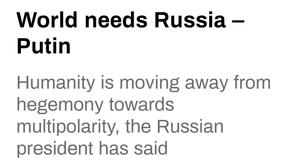 Intressant att ta del av och Putin tar upp många viktiga punkter, där det är uppenbart att vi inte är med på tåget som övriga världen klivit på eftersom våra beslutsfattare hänger sig åt att agera vasaller till vilket pris som helst istället för att tänka på medborgarnas bästa och konsekvenserna har redan börjat bli kännbara.