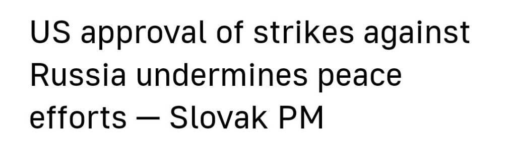 Den slovakiska premiärministern Robert Fico är chockad över hur snabbt vissa europeiska stater uttryckte stöd för Bidenadministrationens beslut och säger i ett videomeddelande på sin Facebooksida att USA:s godkännande av anfall mot Ryssland undergräver fredsansträngningarna.