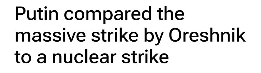 -”I händelse av en massiv användning av Oreshnik-missiler i en attack kommer dess kraft att vara jämförbar med användningen av kärnvapen. Temperaturen på missilens träffande element når 4000 grader. Oreshnik-missilen träffar även högt skyddade föremål som ligger på stora djup.