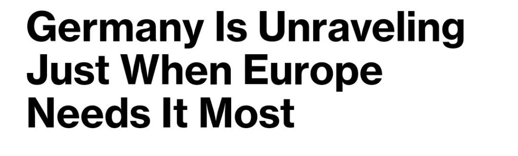 Redan nu närmar sig Tyskland en punkt utan återvändo med en allt djupare ekonomisk nedgång och politisk osäkerhet. 2023 var Tyskland det enda landet av G7-ekonomierna som minskade och inför ett andra år med nolltillväxt är EU:s största ekonomi på väg mot en nedgång som enligt Bloomberg kan bli oåterkallelig.