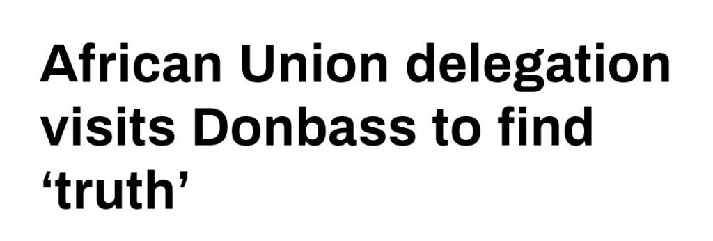 Noterar att medlemmar ur det Panafrikanska parlamentet, som är en institution inom Afrikanska unionen, besökte Folkrepubliken Donetsk (DPR) i söndags på inbjudan från Moskva där man konstaterade det som man hymlar med i både EU och Sverige – att Ukrainakonflikten är ett proxykrig som förs av västerländska stater mot Ryssland och att det i åratal pågått ett folkmord i Donbass.