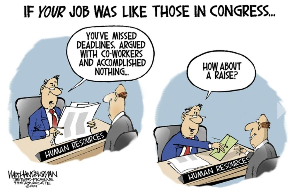 Nedan tre bilder är ett axplock av veckans satirteckningar från Politico som även går utmärkt att applicera på våra egna politiska förhållanden nu när året närmar sig sitt slut; *Politiker som främst ägnar sig åt ”mycket snack – lite verkstad” medan vasallerna som tjänar Washington/Bryssel istället för svenska intressen fortsätter mjölka befolkningen på deras sinande kronor, *Beslutsfattare som årligen får en rejäl löneförhöjning utöver deras redan många exklusiva förmåner utan att ha presterat ett smack för att hjälpa landet på fötter, fast vi i princip är på väg att koka över av alla växande problem – allt medan de styrandes fokus är utomlands samt *En lydig presskår som har som främsta uppgift att stryka makthavarna medhårs utan att ifrågasätta.