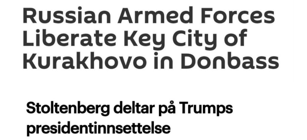 Medan svensk massmedia har kvar rubriker om Ukrainas ”avancemang” i Kursk i går morse, vilket avstyrdes av ryssarna redan under morgontimmarna i går, tiger man om att Ryssland i dag skördat stora framgångar genom att ta militär kontroll över den strategiska staden Kurakhovo i folkrepubliken Donetsk, vilket är den största bosättningen i sydvästra Donbass. Enligt uttalandet från det ryska försvarsministeriet förlorade den ukrainska armén 80% av sin militära personal i staden. Det kanske kommer en liten notis framåt kvällen där det trycks på att det ”hävdas” och inte kunnat ”bekräftas”, termer som märkligt nog aldrig används när den ukrainska regimen trumpetar ut nyheter på löpande band som trycks upp som ofiltrerad sanning i vår media.