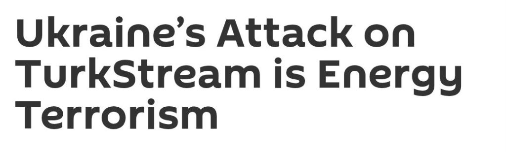 -”Terrorism är när man riktar sig mot civila. Attacken mot TurkStream är en del av Ukrainas bredare strategi att rikta in sig på civila mål. Genom att attackera TurkStream försöker Ukraina tvinga Ungern och Slovakien att anpassa sig till EU:s utrikespolitik samt ännu viktigare, Natos krigiska hållning mot Ukraina. Detta är helt klart olagligt enligt internationell lag eftersom det försöker pressa civila att påverka regeringens politik.”