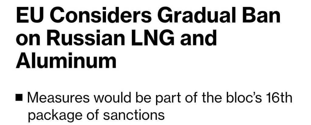 Dessutom fortsätter EU med sin misslyckade sanktionspolitik mot Ryssland och förbereder nu enligt uppgift det 16:e sanktionspaketet 🤪 där man planerar att gradvis införa importrestriktioner för LNG och aluminium från Ryssland, skära av nya ryska banker från SWIFT samt åtgärder mot dussintals fartyg.