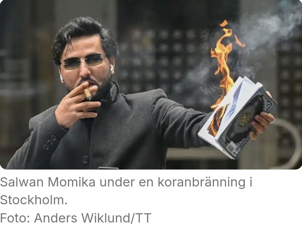 Hinner inte skriva något på lunchrasten, men delar Facebookvännen Christian Pavóns text om mordet på Salwan Momika som han sammanfattar bra.