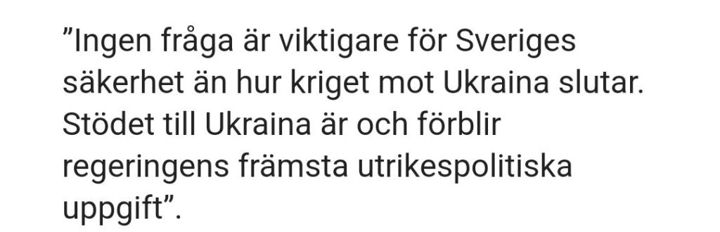 Utrikesminister Maria Malmer Stenergard uttryckte i P1 tidigare i dag att Sverige är beredda att skicka svenska soldater till Ukraina och när statsminister Ulf Kristersson uttalade sig inför toppmötet i Paris slog han fast att man står eniga och starka i sitt stöd till Ukraina som behöver ökas samt snabbas på. Dessutom upprepade han ännu en gång att ingen fråga är viktigare för Sveriges säkerhet än hur kriget mot Ukraina slutar 🤦♀️ samt att stödet till Ukraina är och förblir regeringens främsta utrikespolitiska uppgift.