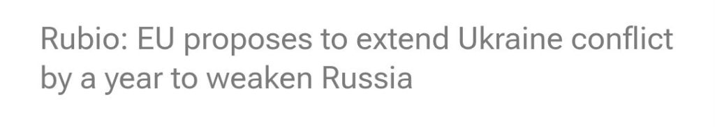 Även USA:s utrikesminister Marco Rubio ser tendenserna när EU:s ledare nu bekänner färg och sade i en intervju med CNN efter misslyckandet i förhandlingarna med Zelensky i Vita huset att Europa vill att konflikten i Ukraina ska fortsätta ytterligare ett år i hopp om att försvaga Ryssland.
