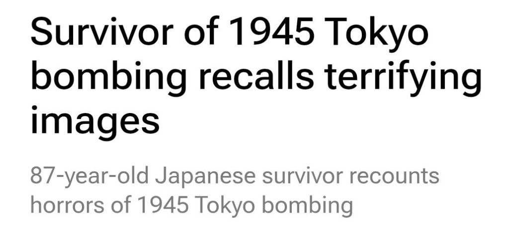 De överlevande som fortfarande är i livet har allt i färskt minne. 87-årige Yoshikazu Hamada var sju år gammal i mars 1945. Hans far hade dött i kriget kort efter hans födelse och han bodde ensam med sin mor. Han kan fortfarande minnas händelserna under den natten nästan minut för minut: bombningen varade i ungefär en och en halv timme och började vid midnatt den 10 mars.