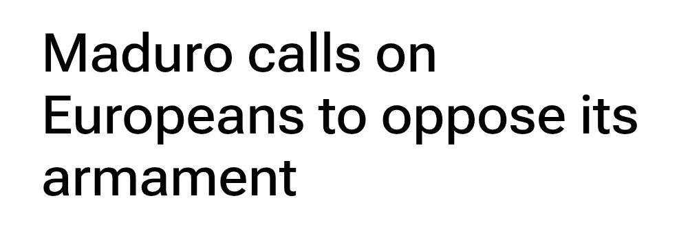 Efter EU-ledarnas utspel om att spendera 800 miljarder euro på vapen, uppmanar nu Venezuelas president Nicolas Maduro i TV-programmet ”Con Maduro +” Europas folk att gå man ur huse för att protestera mot deras upprustningsplaner.
