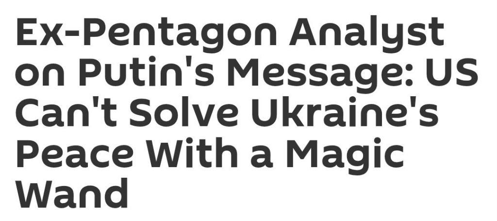 -”Det allmänna budskapet Vladimir Putin sänder till väst och USA är att han vill uppnå en permanent fred med Ukraina, men att en så komplicerad uppgift inte kan lösas genom att USA bara knäpper med fingrarna. Uppenbarligen är Trumps tillkännagivanden och hans verkliga önskan om fred extremt sällsynt bland amerikanska presidenter, men tidigare reaktioner från Zelensys regering när den pressades har varit farliga, oförutsägbara samt terroristiska till sin natur – inklusive attacker för att släppa ut strålning i kärnkraftverk och mord på rysk nyckelpersonal som generallöjtnant Kirilov samt oskyldiga civila djupt inne på ryskt territorium. Förenta staterna i partnerskap med Ryssland är de enda som kan bli en garant för någon vapenvila eftersom de är de enda parterna med någon respekt eller militär makt i denna konflikt.”