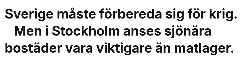 Det är nog så att inte ens den värsta krigshetsare i verkligheten tror på sitt eget budskap att Ryssland ska invadera, det är bara politisk teater för att öka vapenproduktion och militärutgifter! Och det här med livsmedelsproduktionen så har MP, S och V ständigt fört ett krig mot lantbrukarna i Sverige…mat kan man ju köpa på ICA är mottot. Det är så illa att vi numera importerar nästan hälften av vår mat?