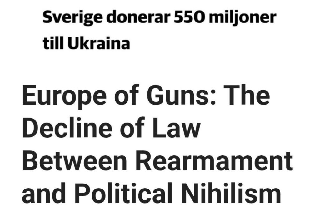 ”Europeiska unionen, född ur ett radikalt förkastande av krig som ett konventionellt instrument för att lösa tvister, överger sitt ursprungliga uppdrag för att anpassa sig till en våldslogik som urholkar dess rättsliga och konstitutionella natur och berövar den allt filosofiskt djup. Kapprustningen är inte ett tecken på styrka, utan en manifestation av svagheten i ett politiskt projekt som har förlorat sitt existensberättigande.