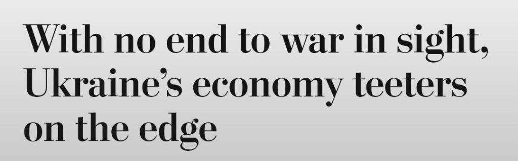 The Washington Post skriver i dag, med hänvisning till en högt uppsatt källa inom det ukrainska presidentämbetet, att Ukrainas ekonomi balanserar på randen till kollaps trots stöd från västländer.