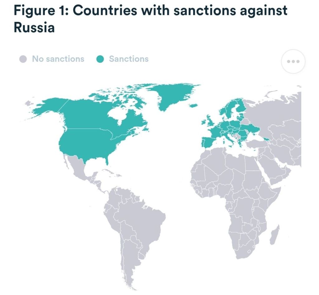 Det största antalet restriktioner har införts av USA, Kanada och Schweiz – följt av Sverige och Norge. Per den 18 juni 2025 var antalet uppe i cirka 30 159 icke-handelsrelaterade sanktioner (exklusive sanktioner mot handel med specifika varor) av andra länder. Drygt 92% av dessa sanktioner infördes efter februari 2022.