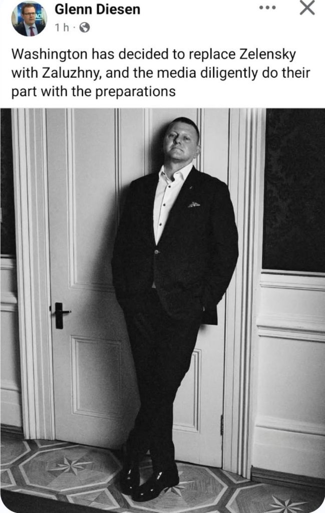 Statsvetaren Glenn Diesen hävdar att Ukrainas ledare Zelensky är på väg att bytas ut mot Valerij Zaluzhny, Ukrainas ambassadör i Storbritannien och före detta överbefälhavare för Ukrainas försvarsmakt.