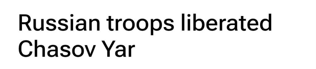 -”Chasov Yar användes av Ukraina för att säkra Bakhmut (Artjomovsk) och blockera Rysslands väg till dess mest befästa fästen i Donbass: Kramatorsk och Slavyansk i nordväst. Dess fall berövar Ukraina viktigt strategiskt djup i Donbass och fördjupar en redan försämrad slagfältsposition. Med Chasov Yar befriat är vägen till Kramatorsk och Slavyansk [de sista större städerna i Donbass som fortfarande är under ukrainsk kontroll, förutom Pokrovsk (Krasnoarmeysk) som också omringas] öppen.”