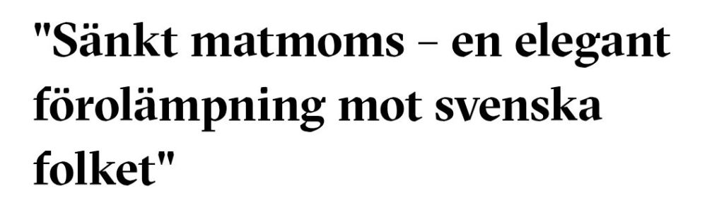 När regeringen tillsammans med sitt stödparti Sverigedemokraterna i veckan som gick presenterade ett förslag om tillfälligt sänkt matmoms från 12% till 6% som ska gälla från den 1 april nästa år och beräknas kosta 16 miljarder kronor 2026 och 21 miljarder kronor 2027, under förevändning att det ska underlätta för svenska familjer, var vi många som vädrade valfläsk.