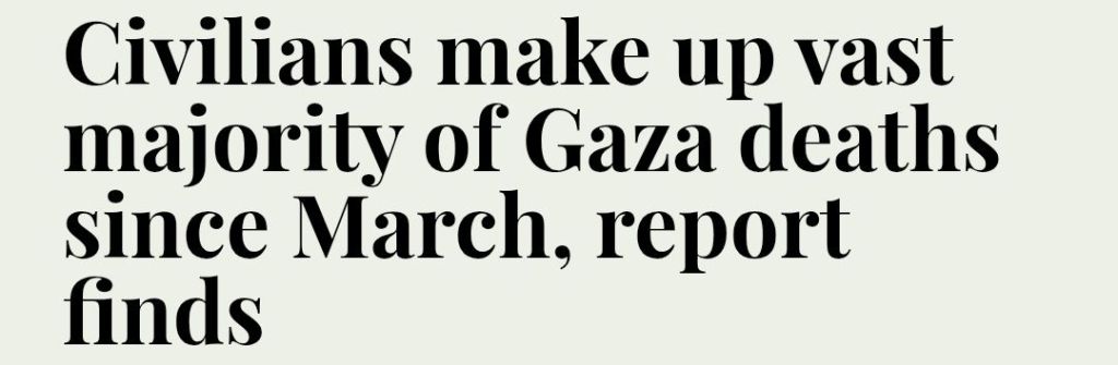 Samtidigt som israeliska styrkor nu rycker in i Gaza stad och tvingar upp till en miljon människor att evakuera, släppte i går den välrenommerade organisationen ”Armed Conflict Location and Event Data” uppgifter som visar att nästan 94% av de palestinier som dödats av israeliska styrkor i Gaza sedan i mars är civila. Siffran är bland de högsta som registrerats under konflikten.