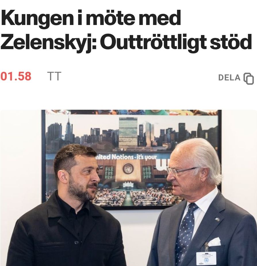 Det svenska kungaparet som befinner sig i New York för FN:s 80-årsdag passade så klart på att frottera sig med Zelensky som redan vid tidigare tillfällen träffat kungaparet och kungen – som på pappret ska föreställa ”neutral” – uttryckte också sitt outtröttliga stöd för att Sverige fortsätter agera bankomat åt Ukraina.