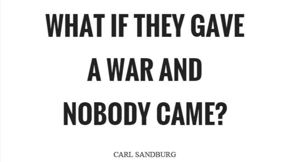 Tänk om det blev krig och ingen gick dit… är ett uttryck som felaktigt tillskrivits Astrid Lindgren, men ändock en mycket klok fundering som i dagens läge med ständig krigshets borde få mer uppmärksamhet.