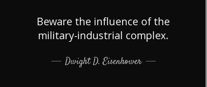 I kölvattnet av det senaste dygnets händelser där våra beslutsfattare tagit oss ännu ett steg närmare kriget i sin iver att gynna krigsindustrin, fick jag syn på ett passande citat av den tidigare amerikanske presidenten Dwight D. Eisenhower som såväl våra världsledare som de inhemska vasallerna borde ta i beaktande:
