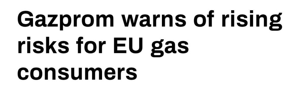 Gazprom varnade i ett Telegraminlägg i går för att långvarig eller intensiv kyla, i kombination med uttömda gasreserver i lager, kommer att äventyra den tillförlitliga gasförsörjningen till konsumenter i hela EU.