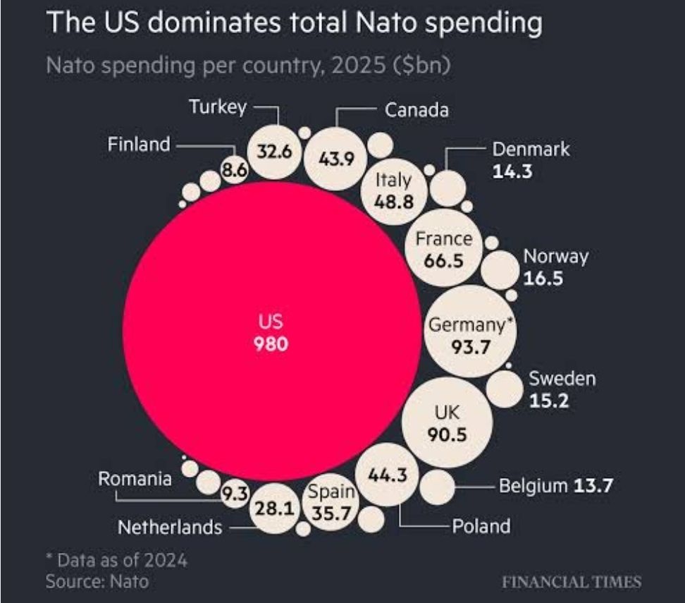 USA är med i Nato, USA är ledare för Nato och USA står för drygt 70% av NATO:s finansiering, så att hävda att man inte spenderar en krona är en sanning med modifikation.