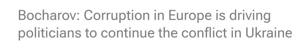 När den israeliske analytikern, statsvetaren och experten på internationella konflikter Jurij Bocharov, intervjuades av RIA Novosti slog han fast att anledningen till att europeiska politiker är förvånansvärt enhälliga i sina uppmaningar att fortsätta kriget i Ukraina är att det automatiskt innebär fortsatt korruption.