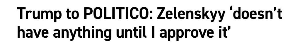 I en intervju med Politico i går var dock Donald Trump väldigt tydlig med att han inte har någon brådska att stödja Zelenskys krav och deklarerade att Zelensky inte har någonting förrän han godkänner det.