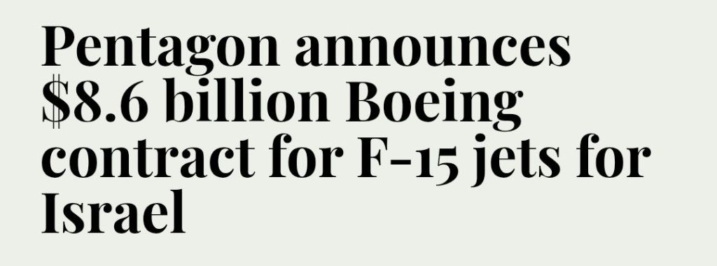 Som kronan på verket presenterades ett guldkantat militärt avtal med Pentagon om leverans till Israel av F-15 plan i form av ett Boeing-kontrakt på 8,6 miljarder dollar.