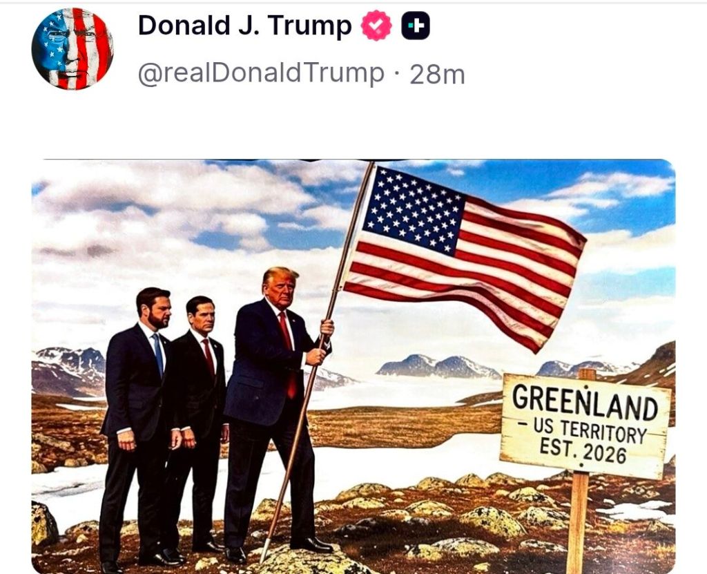 USA:s potentiella annektering av Grönland fortsätter stå i fokus och president Donald Trumps senaste publicerade bilder på Grönland och Kanada taggade med amerikansk flagga på hans sociala medier Truth Social, visar att han inte har för avsikt att vika ned sig.