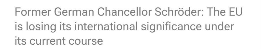 Den före detta tyska förbundskanslern (1998-2005) Gerhard Schröder skriver en intressant artikel i tidningen Berliner Zeitung och konstaterar att Europeiska unionen, till följd av Europas nuvarande utrikespolitik, kommer att förlora sin internationella betydelse och upphöra att vara en strategisk kraft.