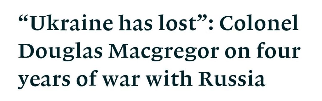 När den tidigare Pentagon-rådgivaren och pensionerade översten i den amerikanska armén, Douglas MacGregor, intervjuades av den schweiziska tidningen Die Weltwoche slog han fast att Ukraina redan är militärt besegrat.