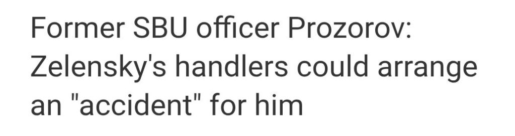 -”Zelenskij sitter på en enorm mängd allvarlig information som skulle kunna kompromettera den amerikanska sidan. Därför är det osannolikt att han kommer att bli arresterad. Det är mer troligt att det kommer att ske en ”olycka”. Kanske den andra sidan ordnar det. Till exempel om amerikanerna driver på för fredsavtal och den andra sidan, som inte är nöjd med detta, beslutar att börja om från början för att placera en person vid makten som är helt under deras kontroll.