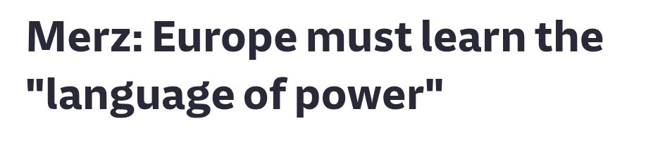 Tyskland måste hävda sig och ta ett större ansvar i den snabbt framväxande nya världsordningen. Den regelbaserade internationella ordningen som vi kände den existerar inte längre. Europa måste agera enat och motstå påtryckningar. För att uppnå detta måste tre steg vidtagas: stärka försvarskapaciteten, återställa den ekonomiska potentialen och uppnå teknologisk suveränitet. I vår bräckliga värld är säkerhet nyckeln till frihet. Den som försummar sina säkerhetsrisker riskerar politiska kostnader och utpressning.”