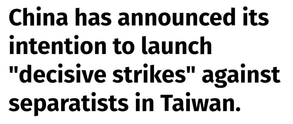 Se där ja, Kina tar tillfället i akt att avisera att de kommer att arbeta för en återförening med Taiwan och kommer även att inleda ”beslutsamma angrepp” mot separatisterna som förespråkar öns självständighet.