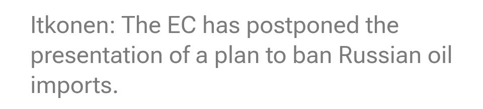 Se där ja, samtidigt som energikrisen tynger Europa med stigande oljepriser på grund av konflikten i Mellanöstern och hot från USA om indragna gasleveranser, meddelade EU-kommissionens talesperson Ana Kaisa Itkonen i dag att den planerade diskussionen om en plan att förbjuda import av rysk olja som var planerad att äga rum vid ett möte med EU-kommissionen den 15 april har tagits bort från agendan.