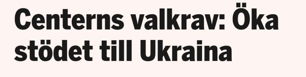 Det kompakta stödet från höger till vänster bland riksdagspartierna är intakt och nu vill vissa partier gå steget längre genom att utöka stödet ytterligare. Centerpartiets ekonomisk-politiske talesperson Martin Ådahl deklarerade under sitt besök i Ukraina att Centerpartiet vill se en höjning av Sveriges villkorslösa stöd till Ukraina och kommer kräva ett ökat stöd som ett villkor om de hamnar i regeringsförhandlingar efter valet.