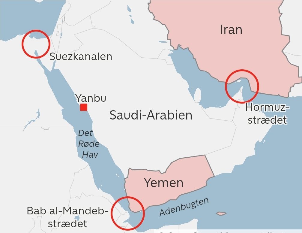 Saudiarabien har försökt skapa en alternativ leveransväg för sina partners i Asien genom att skeppa olja via Bab al-Mandebsundet, från hamnstaden Yanbu och söder om Arabiska halvön.